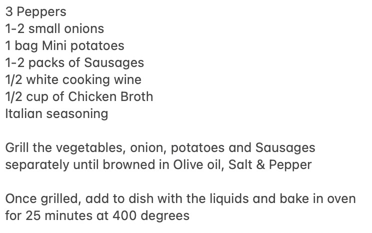 This random sausage, potato, pepper and onion dish that my cousin gave to me (and I think her sister-in-law gave to her? Anyway, we’re calling it a family recipe now). It’s easy, but a little time-consuming (you have to pre-cook everything ahead of tossing it in the oven) but it’s one of my favourite cozy, cold-weather meals. I toss some giardiniera on top (spicy Italian pickled vegetables) for some spice, and then grab some bread to fare la scarpetta (clean the sauce) 🤌🏼 You’re welcome.